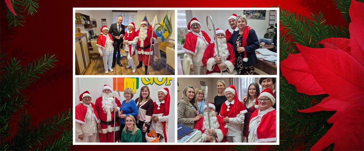 Najpierw cała trójka zawitała do Urzędu Gminy w Dygowie i do GOPS-u, gdzie wszyscy – zarówno pracownicy chętnie pozowali do zdjęć. Wizyta Mikołaja skutecznie rozjaśniła urzędowe korytarze i wywołała sporo uśmiechów.