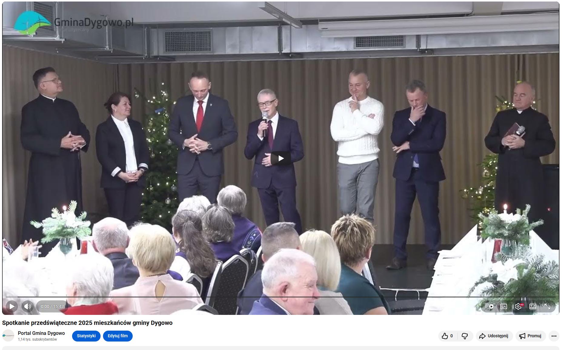 Okres poprzedzający Święta Bożego Narodzenia to w gminie Dygowo czas szczególny – od lat kultywowana jest tu tradycja przedświątecznych spotkań z mieszkańcami. Tak było również w tym roku. 13 grudnia sala widowiskowa Gminnego Ośrodka Kultury w Dygowie wypełniła się mieszkańcami ze wszystkich sołectw gminy.