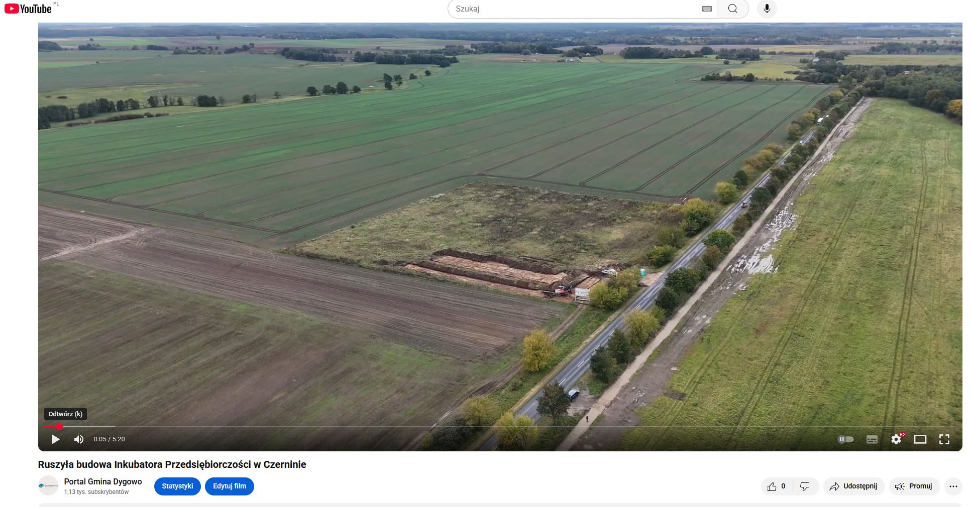 Na terenie parku inwestycyjnego w Czerninie rozpoczęła się budowa długo wyczekiwanego Inkubatora Przedsiębiorczości. Jako pierwsza powstaje hala o powierzchni około 1200 m². Inwestycja realizowana jest przez gminną spółkę Dygowski Samorządowy Park Inwestycyjny INVEST-PARK Sp. z o.o., działającą z ramienia.