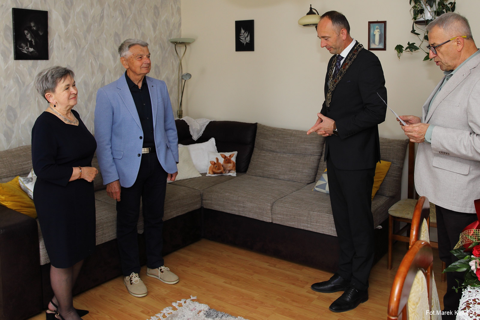W imieniu Prezydenta RP medale jubilatom wręczył wójt Gminy Dygowo Grzegorz Starczyk, który złożył wizytę małżonkom w ich domu. Ceremonię poprzedziło odczytanie przez pracownika Urzędu Stanu Cywilnego w Dygowie, Ryszarda Słomczewskiego, okolicznościowej laudacji poświęconej jubilatom, przypominającej ich wspólną drogę życia i wartości, które przez dekady budowały trwałość ich małżeństwa. Następnie wójt złożył życzenia zdrowia i kolejnych wspólnych lat w miłości oraz wzajemnym szacunku. Złotej Parze wręczono także kwiaty i upominki przygotowane specjalnie na tę okoliczność.