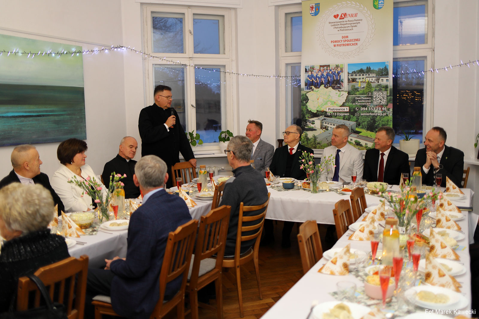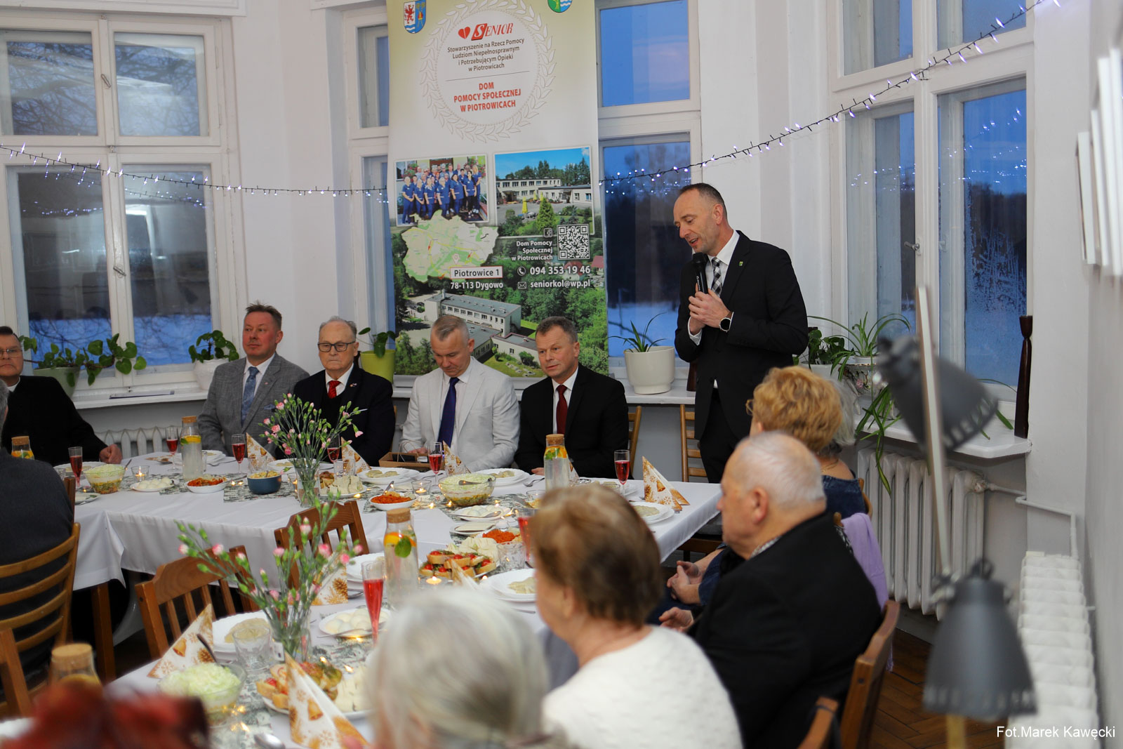 Gości, seniorów, mieszkańców Domu Pomocy Społecznej oraz wolontariuszy serdecznie powitał prezes stowarzyszenia „Senior”, Robert Jaruzel. Następnie głos zabrali zaproszeni goście, którzy złożyli zebranym świąteczne życzenia. Wśród przemawiających znaleźli się przewodniczący Rady Powiatu Kołobrzeg Artur Wasiewski, wójt Gminy Dygowo Grzegorz Starczyk , kierowniczka Gminnego Ośrodka Pomocy Społecznej w Dygowie Wioleta Dzwolak oraz  Prezes Honorowy Stowarzyszenia „Senior”, Antoni Bernatowicz.