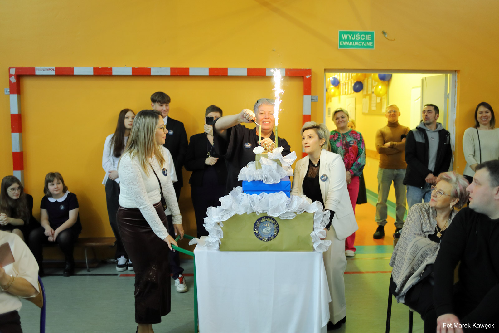 Na zakończenie uroczystości na salę wjechał tort okolicznościowy , który po społu pierwszy kawałek ukroili Antoni Bernatowicz i Robert Jaruzel.