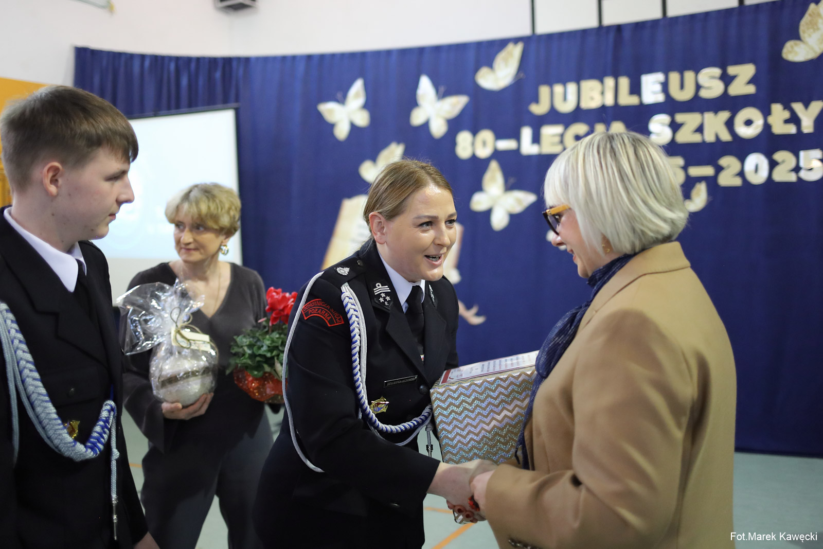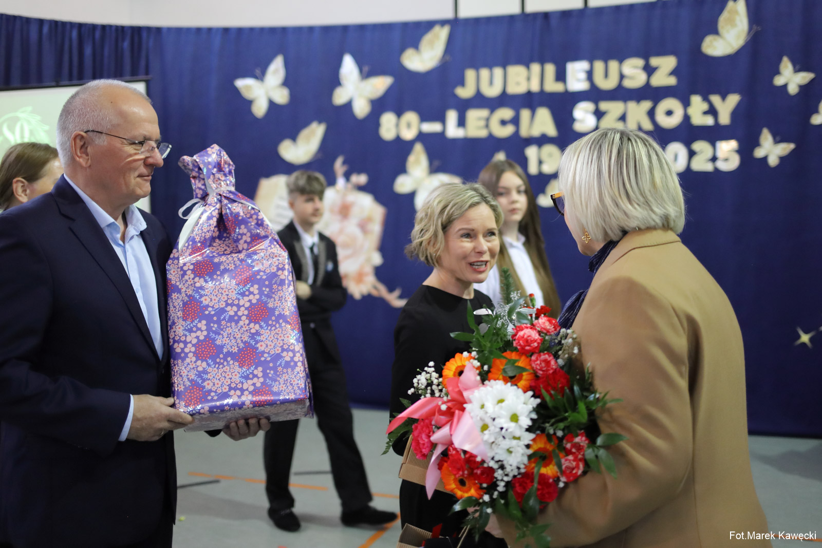 Po projekcji ,goście składali życzenia i wręczali upominki na ręce prezesa stowarzyszenia Senior Antoniego Bernatowicza oraz wiceprezesa i dyrektora DPS Piotrowice Roberta Jaruzela.