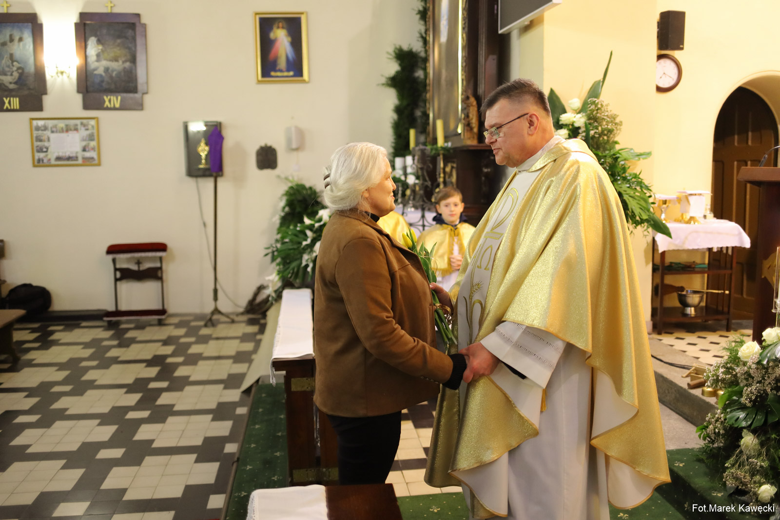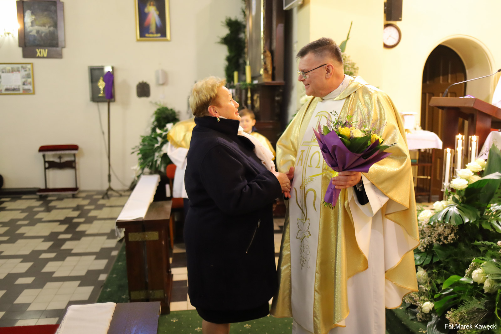 Na zakończenie liturgii ksiądz proboszcz przyjął życzenia od służby liturgicznej, grup modlitewnych oraz parafian, dziękując za wspólne przeżywanie tego wyjątkowego czasu.