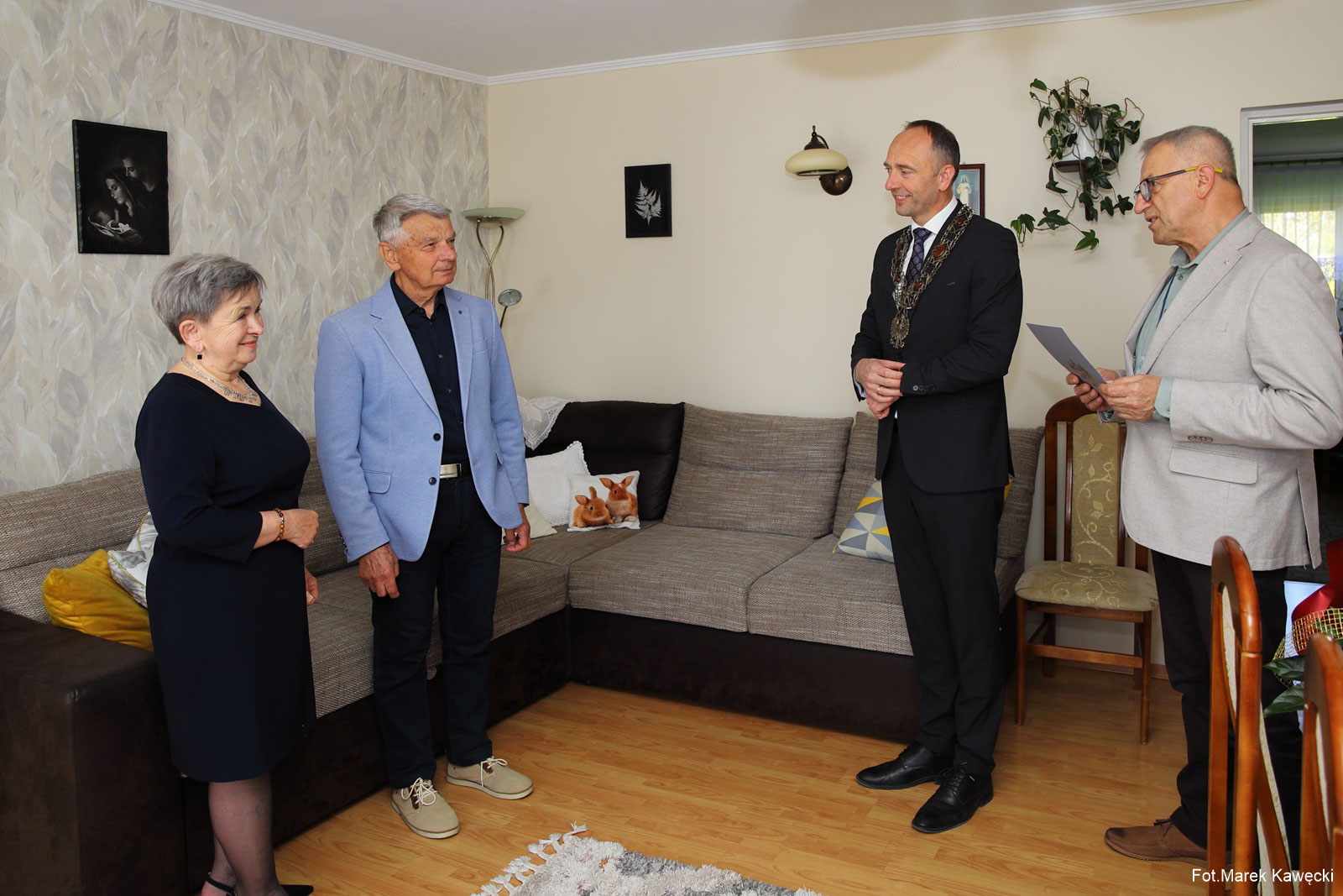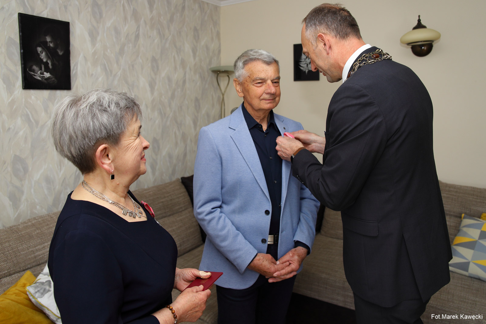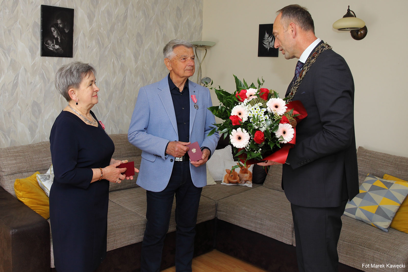 W imieniu Prezydenta RP medale jubilatom wręczył wójt Gminy Dygowo Grzegorz Starczyk, który złożył wizytę małżonkom w ich domu. Ceremonię poprzedziło odczytanie przez pracownika Urzędu Stanu Cywilnego w Dygowie, Ryszarda Słomczewskiego, okolicznościowej laudacji poświęconej jubilatom, przypominającej ich wspólną drogę życia i wartości, które przez dekady budowały trwałość ich małżeństwa. Następnie wójt złożył życzenia zdrowia i kolejnych wspólnych lat w miłości oraz wzajemnym szacunku. Złotej Parze wręczono także kwiaty i upominki przygotowane specjalnie na tę okoliczność.