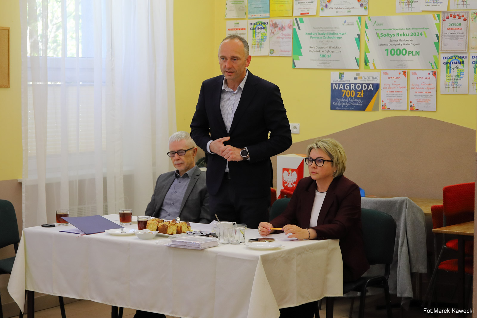 Spotkanie poprowadził wójt Gminy Dygowo, Grzegorz Starczyk, któremu towarzyszyli wicewójt Izabela Płomińska oraz przewodniczący Rady Gminy Dygowo, Jerzy Leszczyński. Gratulacje jako pierwszy złożył wójt, podkreślając gotowość do współpracy.