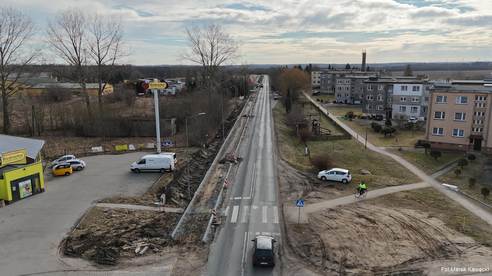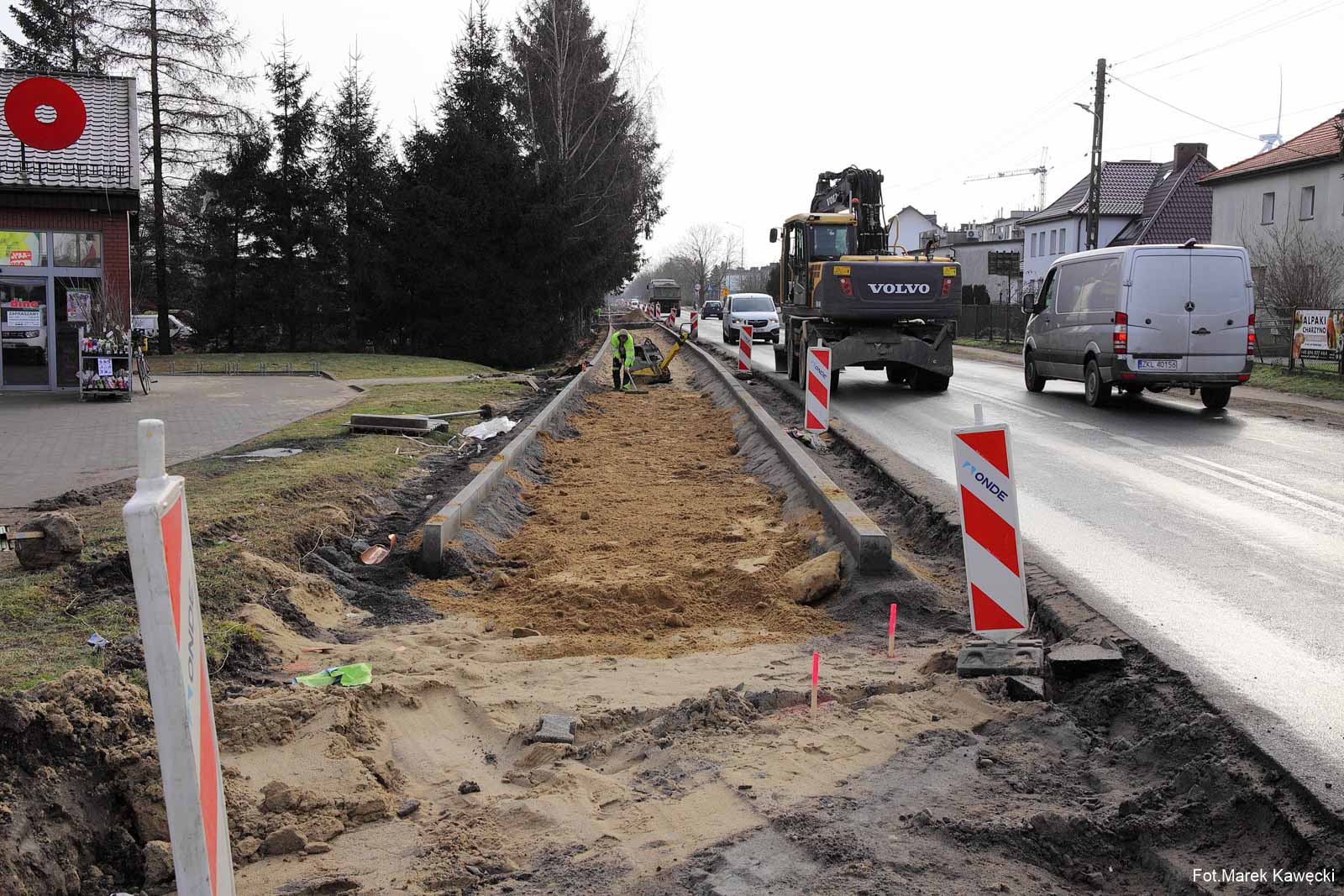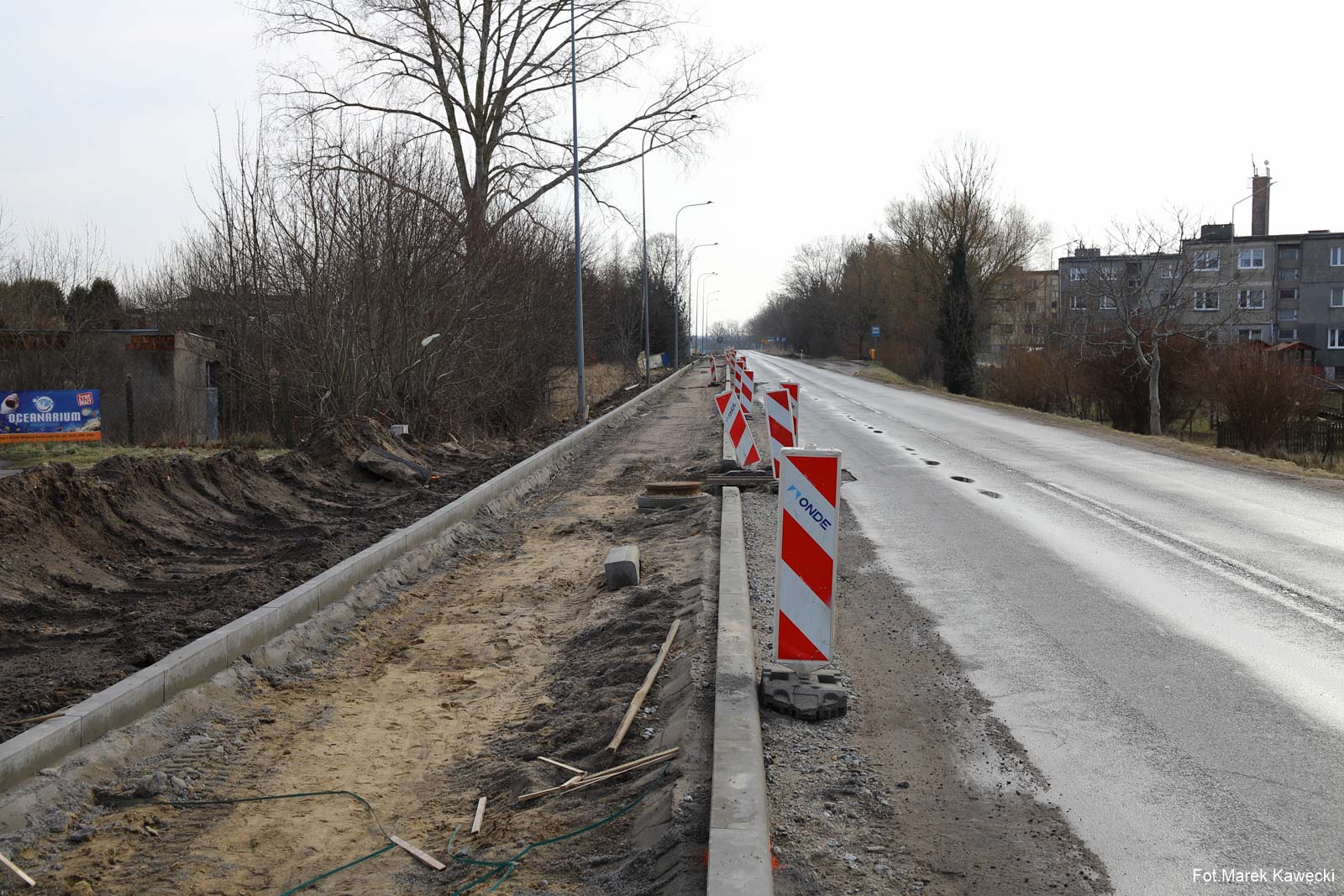 Widoczny na zdjęciu fragment ścieżki wzdłuż ulicy Kołobrzeskiej w Dygowie, stanowi jak dotąd jedyny odcinek który zapewnia bezpieczeństwo poruszającym się pieszym i rowerzystom wzdłuż drogi wojewódzkiej.
