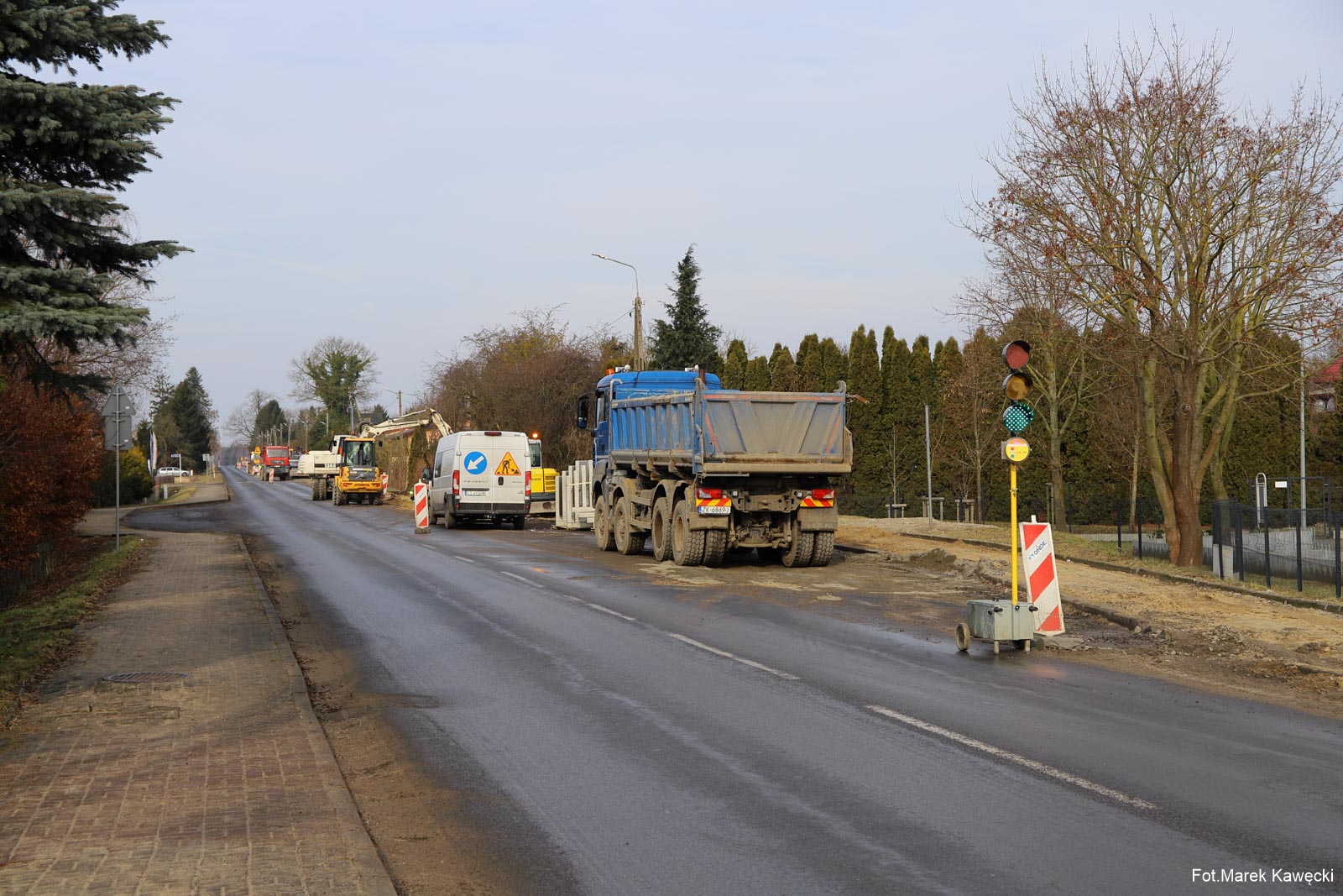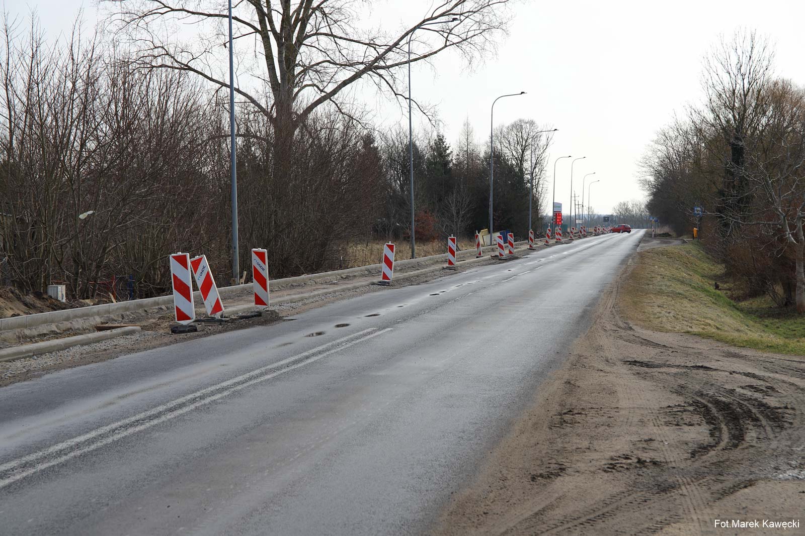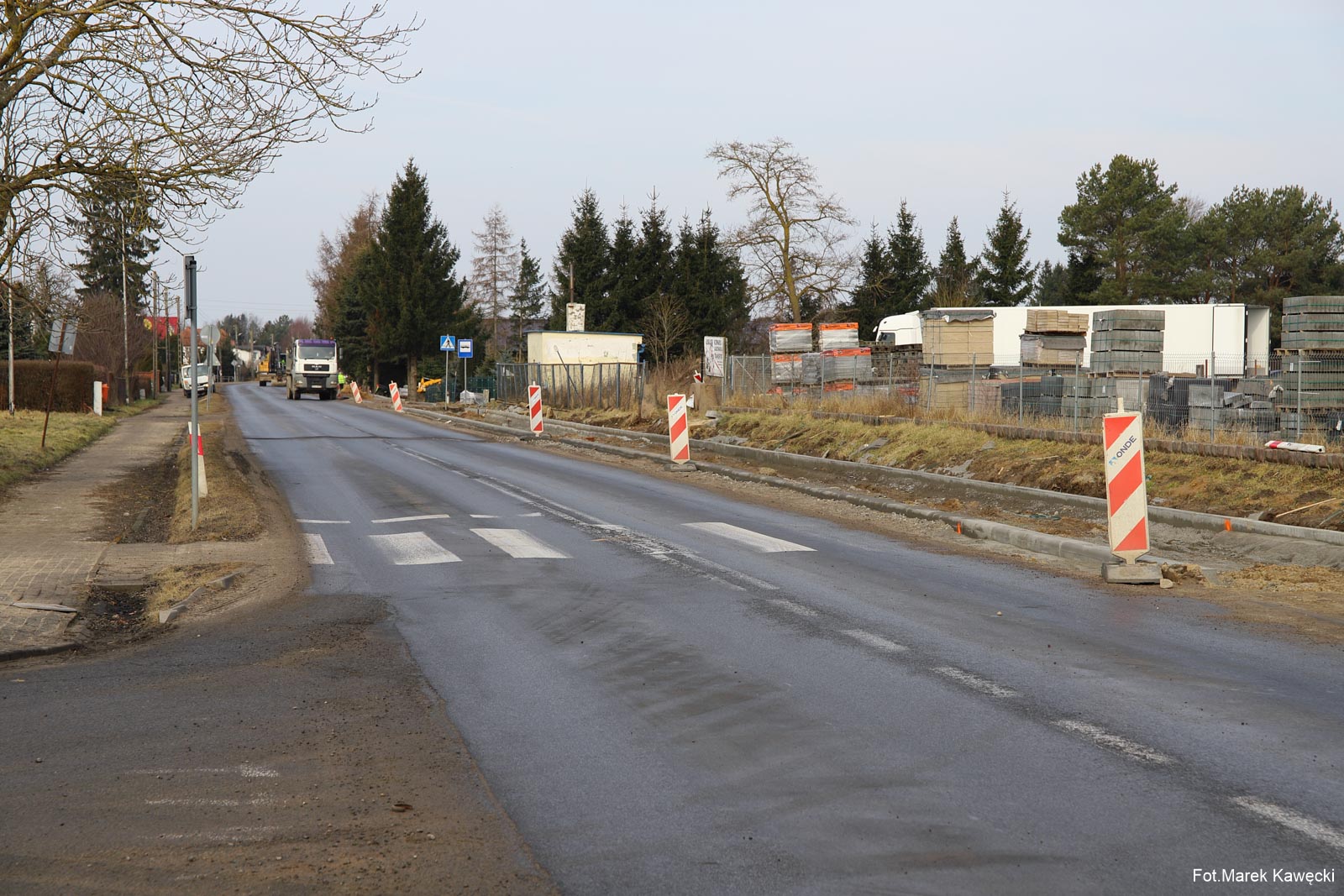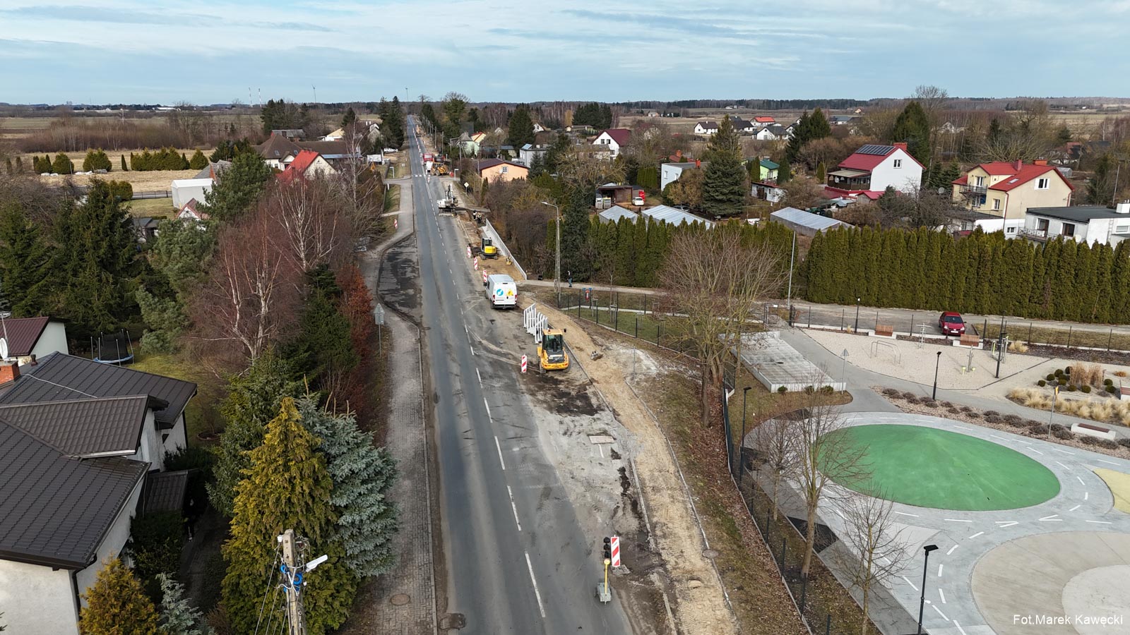 Widoczny na zdjęciu fragment ścieżki wzdłuż ulicy Kołobrzeskiej w Dygowie, stanowi jak dotąd jedyny odcinek który zapewnia bezpieczeństwo poruszającym się pieszym i rowerzystom wzdłuż drogi wojewódzkiej.